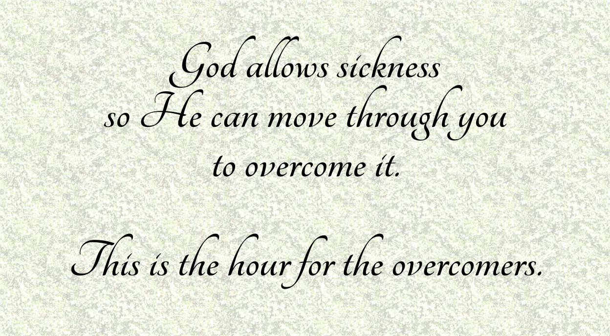 God allows sickness so He can move through you to overcome it. This is the hour for the overcomers.